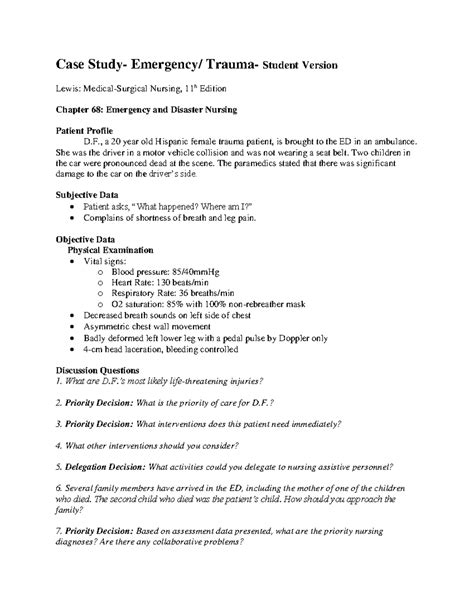 Read Online Emergency case study scenarios for nurses PDF
